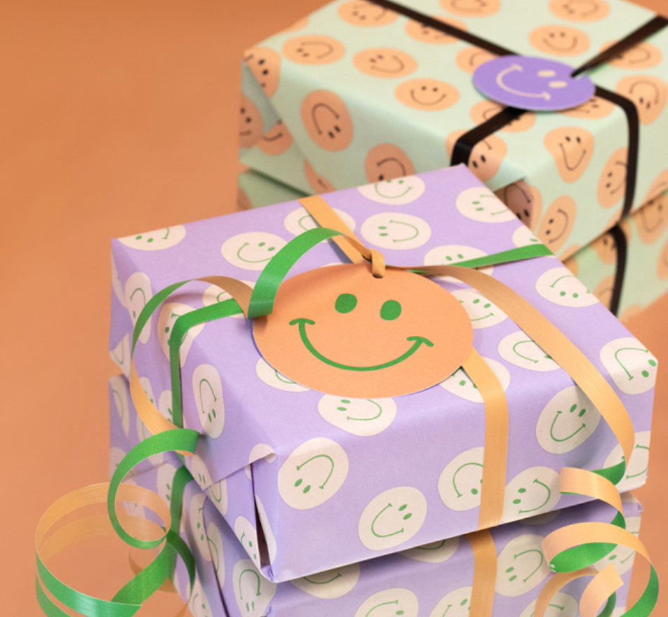 Hochwertiges Einpackpapier mit stylishem Smiley Print.
