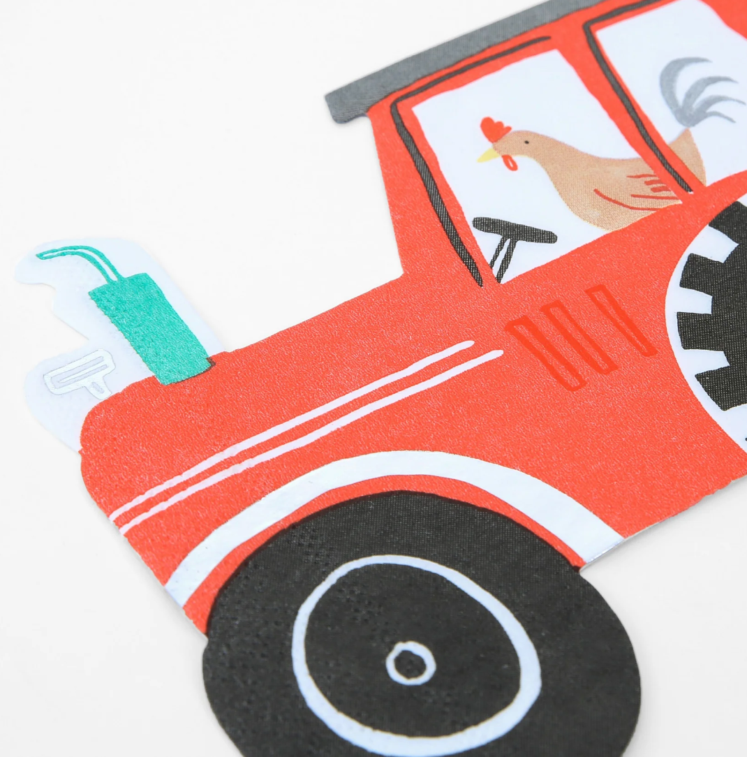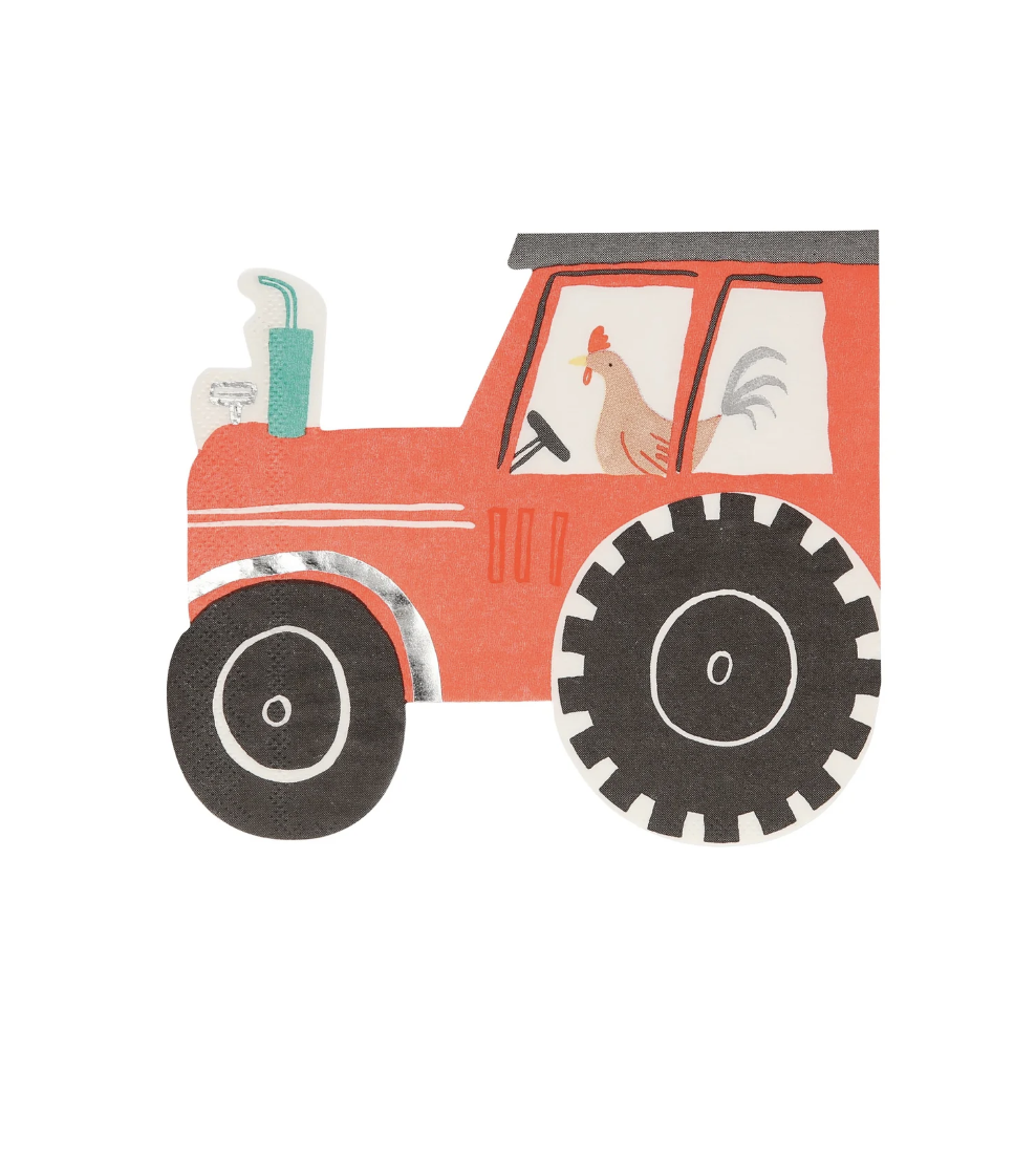 Tuck tuck, these charming, colorful tractor large napkins are just perfect for a farm-themed party! A big red tractor with a cheeky rooster at the wheel is sure to delight party guests big and small.