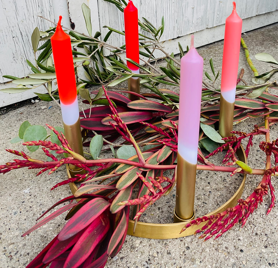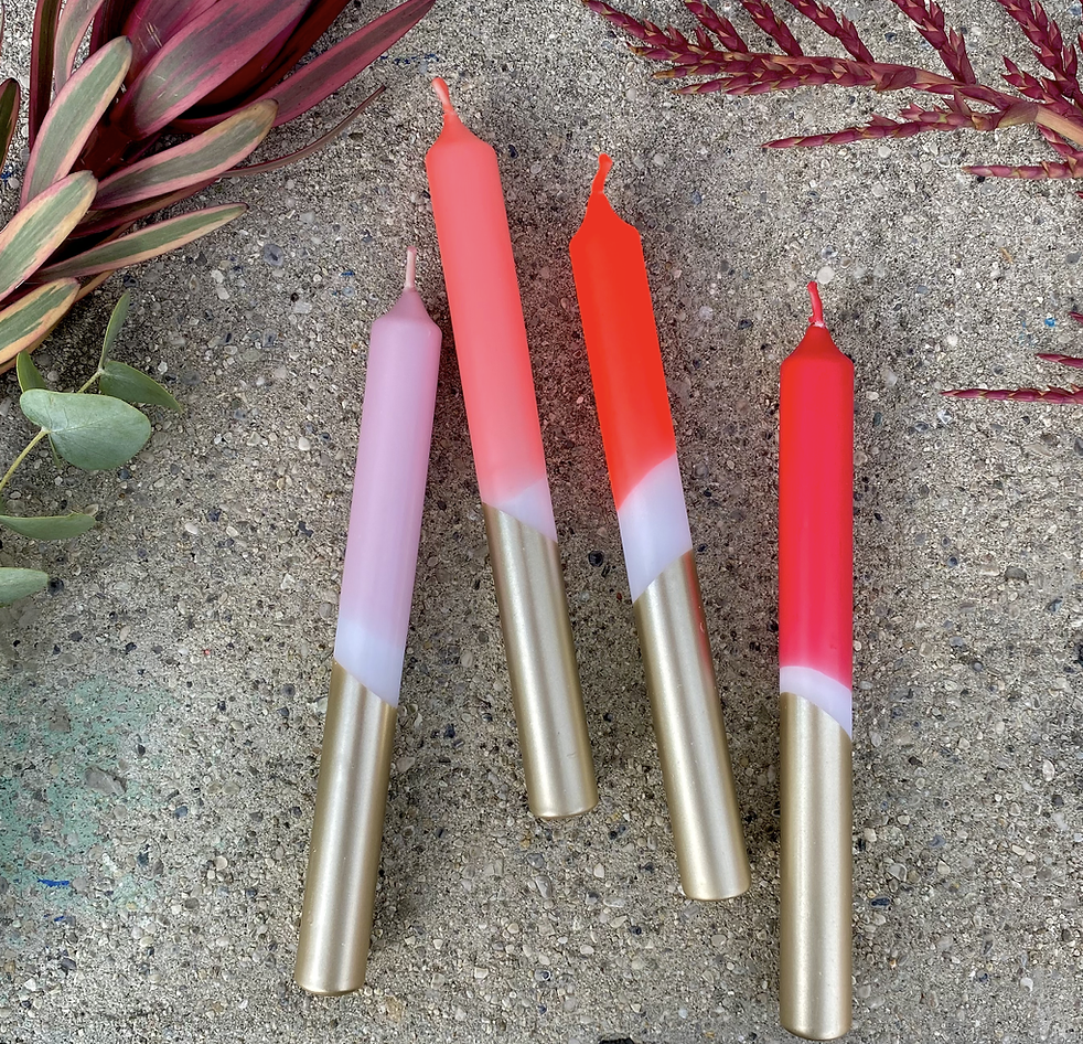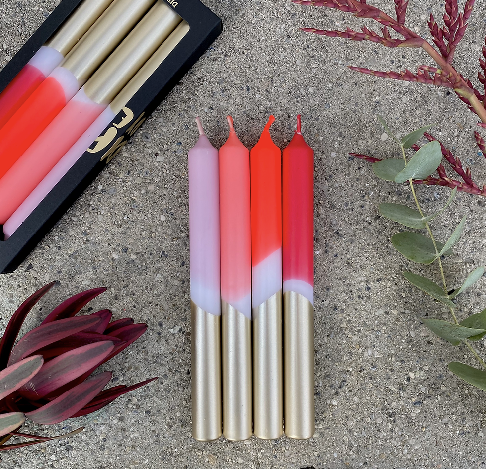 Set of four lovingly hand-colored stick candles in a gold look. Ideal as a gift or for the Advent wreath. The colors remain the same, the pattern gradients vary for each candle, making them particularly unique.