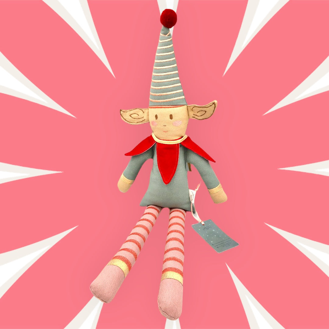 This cute Christmas elf made of solid cotton is handmade and is a beautiful decorative object and toy in one!